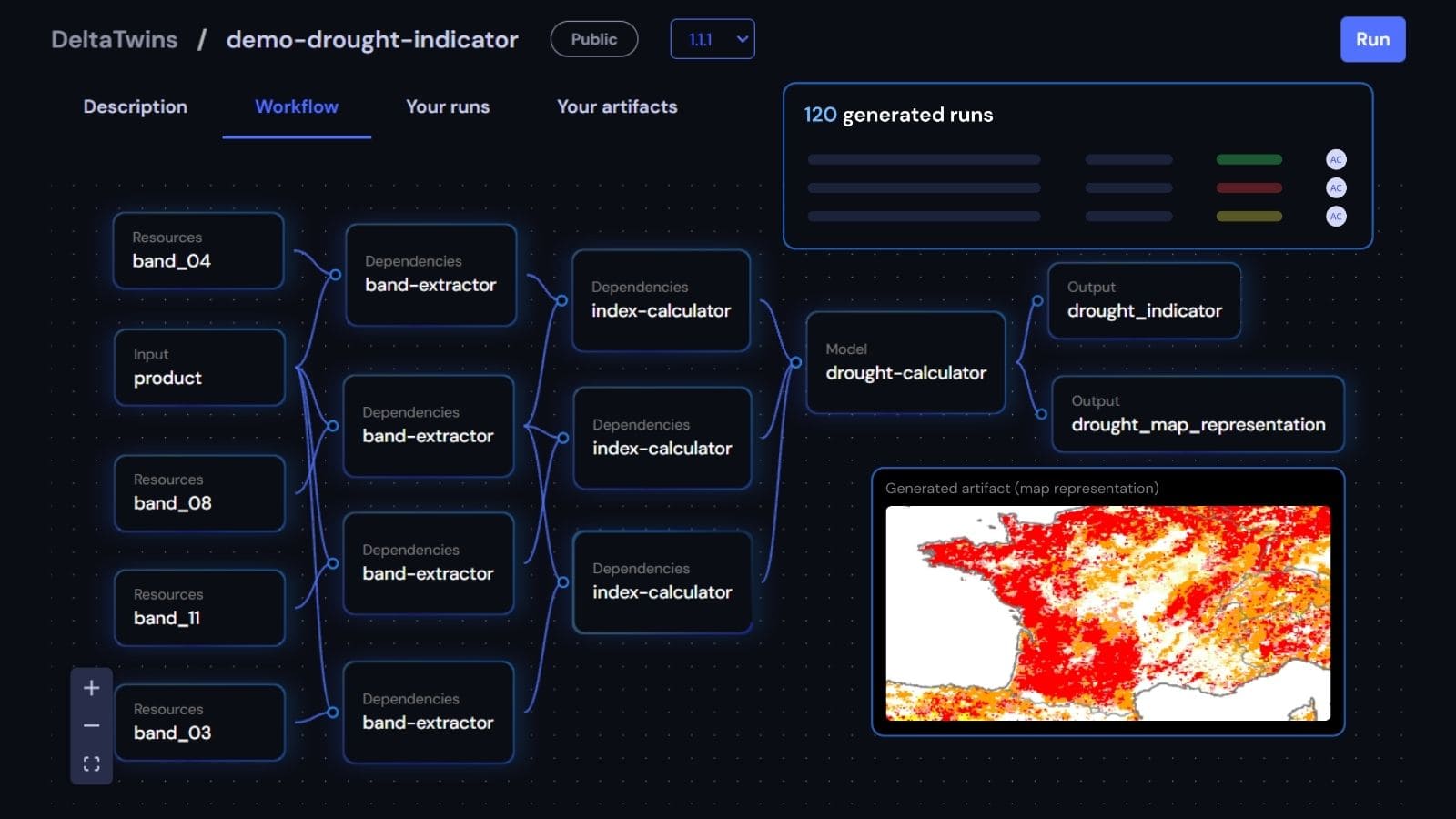 DeltaTwin® Service aims to offer a collaborative environment for building and running multi-scale and composable workflows, leveraring the numerous available data sources, sharing results and easing interoperability with others.